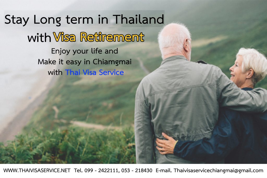 การบริการของเราสำหรับวีซ่าประเภทนี้ ได้รวมถึงการไปเอาคิวให้คุณ และพาคุณไปต่อวีซ่าที่ตรวจคนเข้าเมือง แจ้งรายงานตัวให้คุณ ทุก 90 วัน และดำเนินการรายงานตัวให้คุณทุก 90 วัน ดูแลเรื่องการขออนุญาตกลับมาราชอาณาจักรอีกครั้ง(Re-entry permit) ให้คุณ คือการช่วยเตรียมเอกสารให้คุณ ,ไปเอาคิวการขออนุญาตกลับมาราชอาณาจักรอีกครั้ง(Re-entry permit) ให้คุณ และไปกับคุณ , อัพเดทใบรับแจ้งคนต่างด้าวเข้าพักอาศัย (ตม.30) ให้คุณ ทุกครั้งที่คุณออกนอกประเทศไปแล้วกลับเข้ามา เราจะดูแลคุณตลอดจนกว่าวีซ่าของคุณจะหมด คุณสมบัติของผู้สมัคร ต้องเป็นคนต่างด้าว อายุตั้งแต่ 50 ขึ้นไป และจะต้องไม่เป็นบุคคลต้องห้ามเข้าประเทศ